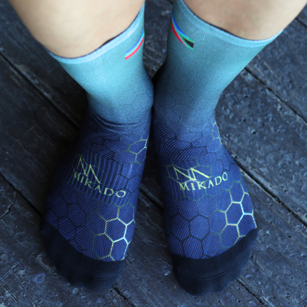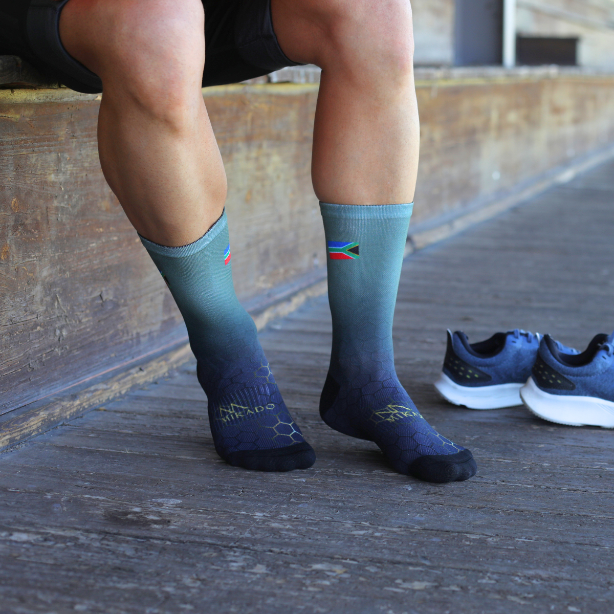 Design style: Hexagon green to black socks with SA Flag.